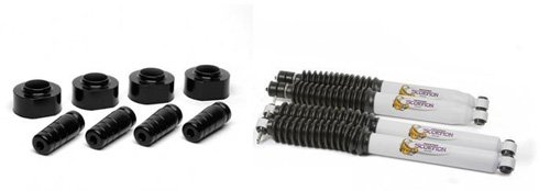 Daystar KJ09158BK Comfort Ride Combo Kit . Daystar now offers a variety of combo kits for many popular applications. Combo kits consist of Daystar's legendary comfort ride lift and leveling kit applications that require shock absorbers, so you can now order one part number that includes leveling kits and new scorpion shock absorbers in one convenient package. Daystar's lift and leveling kits are constructed of high-density polyurethane that maintains factory ride quality and load-carrying capacity while being easy to install. Daystar's scorpion shock absorbers feature a twin-tube design that resists shock fade and are valved specifically for each application. We have also included popular combinations of suspension kits, shocks, and 1 inch body lifts on select applications. One convenient part number orders it all. All of Daystar's lift and leveling kits are made in the USA and are backed by a lifetime warranty. Raise your vehicle for less and maintain your factory ride quality with Daystar.