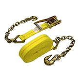 2" X 30' Wide Handle Ratchet Straps with Chain Extensions & Clevis Grab Hooks (10-pack)These heavy duty, 2-inch Ratchet Straps from US Cargo Control are versatile tie down tools designed to hold loads in place on trucks, pickups, trailers, rail cars, semis, and other freight carriers. The yellow, 12,000 lb. industrial grade webbing is 30 feet long on each strap and will not stretch over time or loosen with road vibrations. As an added bonus, these tie downs have extra long and wide handles which provide a comfortable grip and extra leverage when cranking the ratchet. These straps have chain extension end fittings with clevis grab hooks - useful for many custom tie down assemblies. Durable polyester makes these straps highly resistant to weathering, abrasion, corrosion, and other damage. When protecting your valuable items for transit, tie down with confidence using quality, reliable ratchet straps from US Cargo Control. All of our ratchet straps are labeled with their working load limit to meet CVSA guidelines, DOT regulations, and WSTDA, CHP & North American Cargo Securement standards. The hook or end fitting is generally the weakest part of a ratchet assembly, and thus determines the assembly's work load limit. When tying down an item, make sure the total work load limit of the strap(s) you are using equals or exceeds the total weight of the item(s) you are tying down.