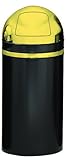 Dome top receptacle with push doors. Features a strong steel shell with a galvanized liner. Self-closing door effectively controls odors. Black unit with brass accents Diameter:15 Height: 35 Weight: 22Capacity in Gallons: 15 Material: Steel Color: Black with brass accents in/out: Indoor Sold Individually (IMPORTANT) SHIP TIME: 5 days Please note: If there is a color/size/type option, the option closest to the image will be shipped (Or you may receive a random color/size/type).