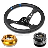 NRG-SRK-130H-RG+016R-BK+200BK, NRG Innovations 13.78" 350mm 3" Deep Dish Style Black Leather Blue Center Marking Racing Steering Wheel Combo with 6 Hole Short Hub Adapter with Gen 2.0 Black Quick Release Kit SRK-130H